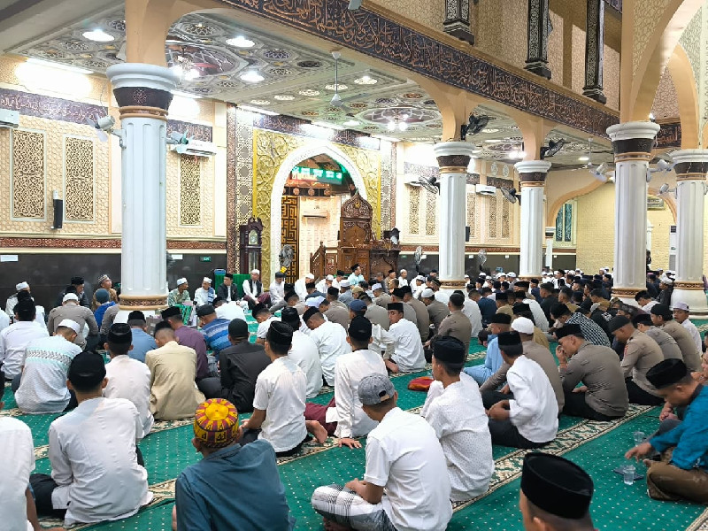 DIALEKSI.COM | Sabang - Ribuan jemaah memadati Masjid Agung Babussalam untuk mengikuti Zikir dan Doa Bersama dalam rangka memperingati Hari Santri Nasional (HSN) Tahun 2025, Ahad malam, 19 Oktober 2025.
