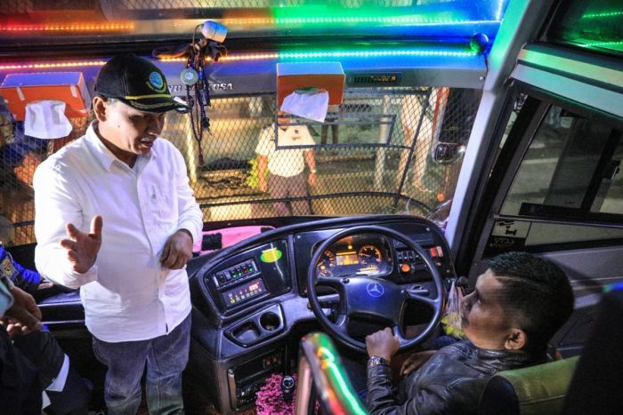 Kepala Dinas Perhubungan Aceh dalam blusukannya menghimbau kepada para penumpang agar tetap berhati-hati dan jangan takut untuk mengingatkan sopir bus yang lalai saat bertugas, agar perjalanan menuju kampung halaman aman dan selamat. (DISHUB ACEH)
