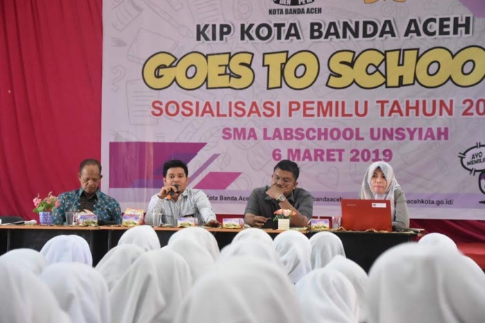 DIALEKSIS.COM | Banda Aceh - Menjelang hari pemilihan 17 April 2019, Puluhan siswa SMA Labschool Unsyiah diajarkan tata cara pencoblosan dan mengenali jenis surat suara pemilu serentak 2019, Rabu (6/3). Kegiatan yang dihadiri ratusan siswa ini dilaksanakan KIP Banda Aceh sebagai bagian dari sosialisasi dan pendidikan politik kepada pemilih pemula.