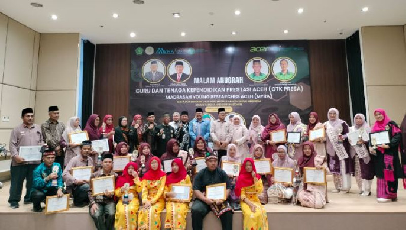 DIALEKSIS.COM | Banda Aceh - Sebanyak 11 Guru dan Tenaga Kependidikan (GTK) Kementerian Agama Kabupaten Aceh Tengah berhasil mengukir prestasi gemilang sebagai Terbaik I pada Malam Anugerah Guru dan Tenaga Kependidikan Prestasi Aceh (GTK PRESA) Tahun 2025. Acara tersebut berlangsung di Gedung Landmark BSI Aceh, Senin (24/11/2025) malam.
