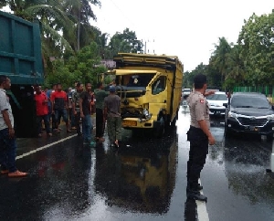 Sebuah kecelakaan terjadi di Jalan lintas Banda Aceh-Medan tepatnya di kawasan Simpang Dama Gampong Ulee Tanoh Kecamatan Tanah Pasir, Aceh Utara, Senin (17/5/2021). Sepmor Honda Supra warna hitam dengan nomor polisi F 2684 KZ menabrak mobil L300 warna BL 1893 NB yang melaju dari arah berlawanan hingga terguling.